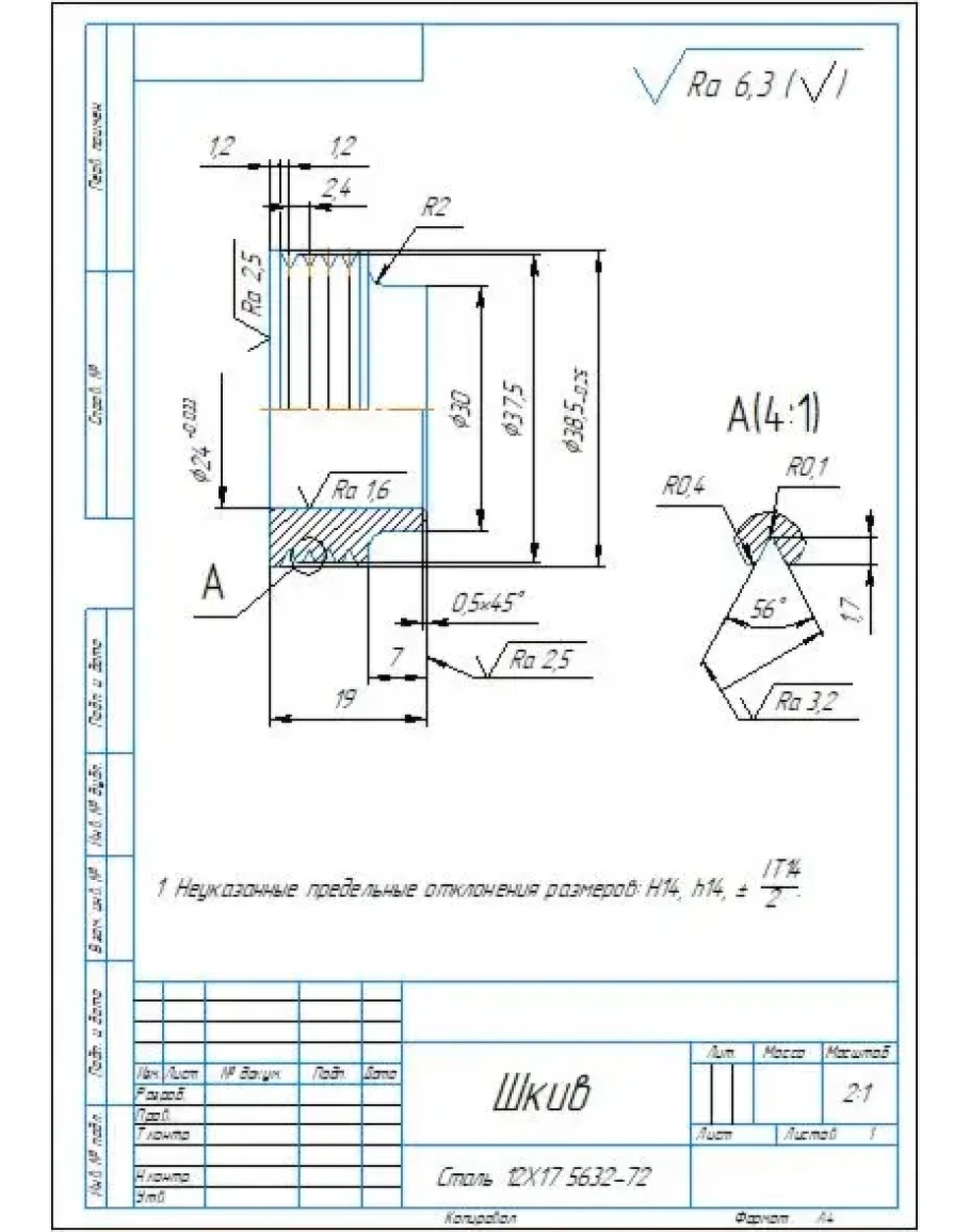Шкив поликлиновой. Рабочий чертеж детали в компасе