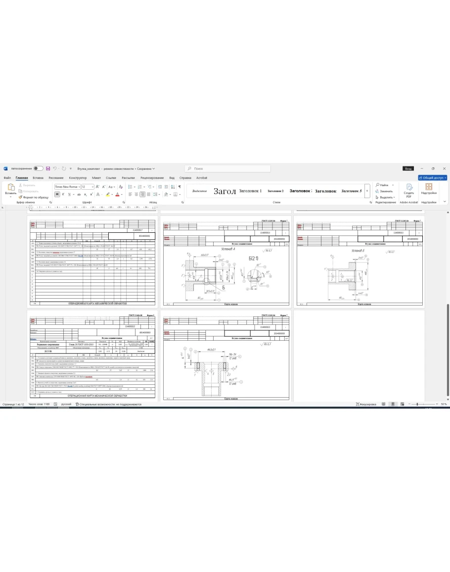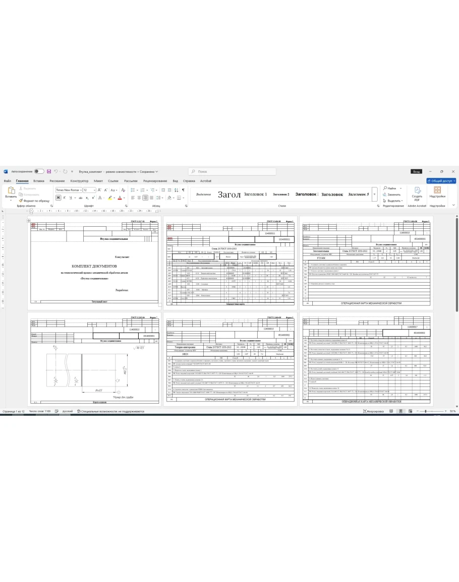 Комплект технологических карт изготовления детали втулка соединительная: маршрутные карты, операционные карты, карты эскизов. Также приложен рабочий чертеж и 3д модель детали втулка соединительная. Карты выполнены в ворде, чертеж и модель выполнены в компасе.