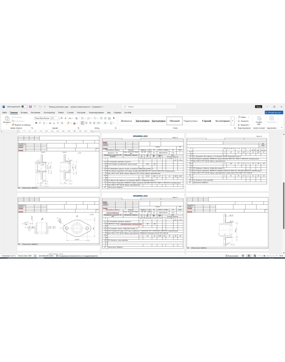 Карты технологического процесса изготовления детали фланец: маршрутные карты, операционные карты, карты эскизов. Карты выполнены в ворде. Также приложен рабочий чертеж детали фланец в компасе.