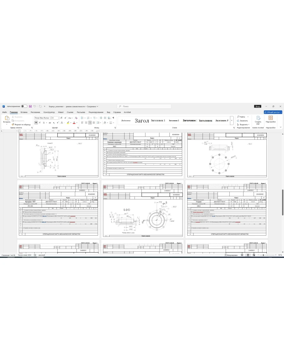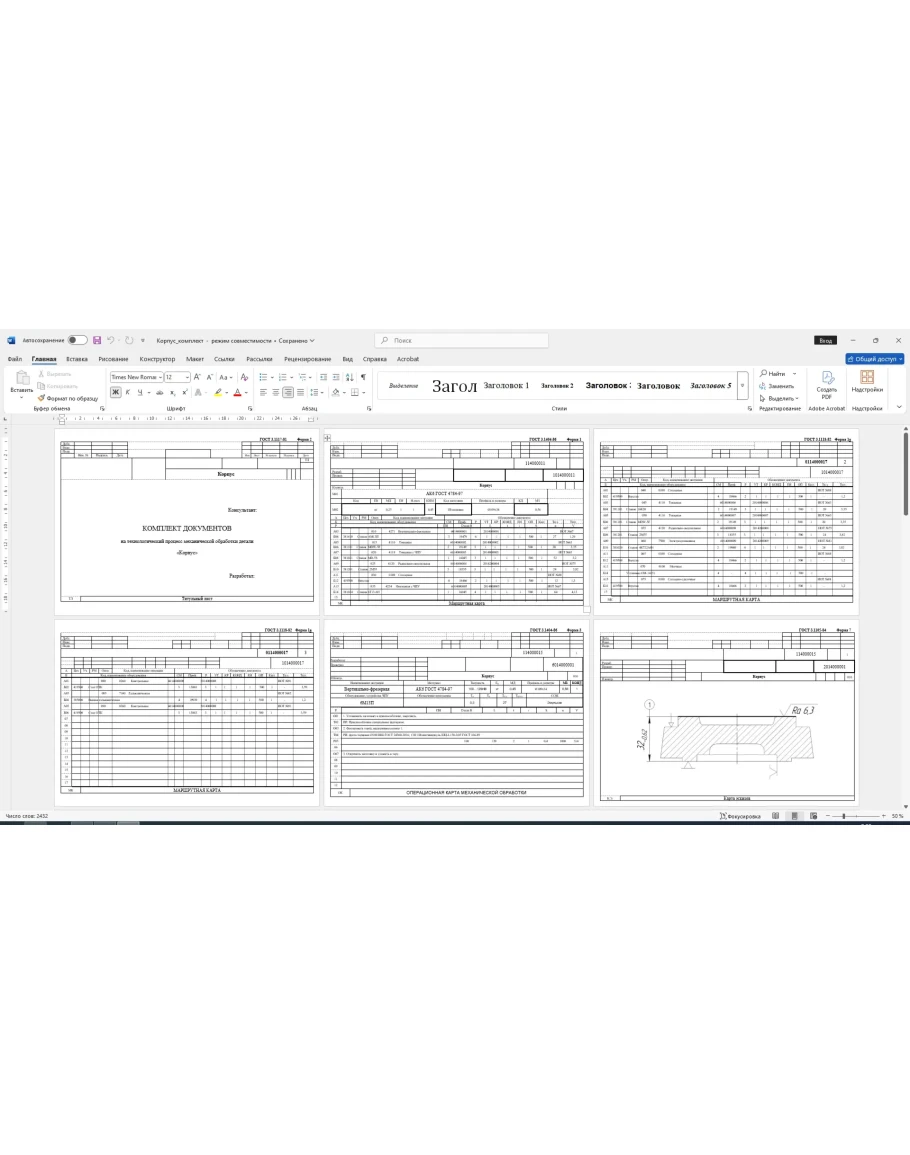 Карты технологического процесса изготовления детали корпус: маршрутные карты, операционные карты, карты эскизов. Также приложен рабочий чертеж детали корпус. Карты выполнены в ворде, чертеж в компасе.