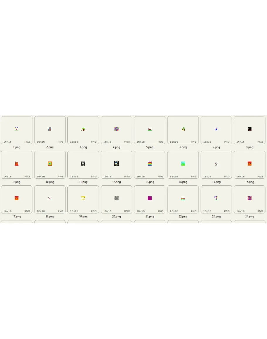 86 иконок 16x16. Нарисовал мальчишка 6 лет. Иконки для игр, программ. Тема самые разные.
