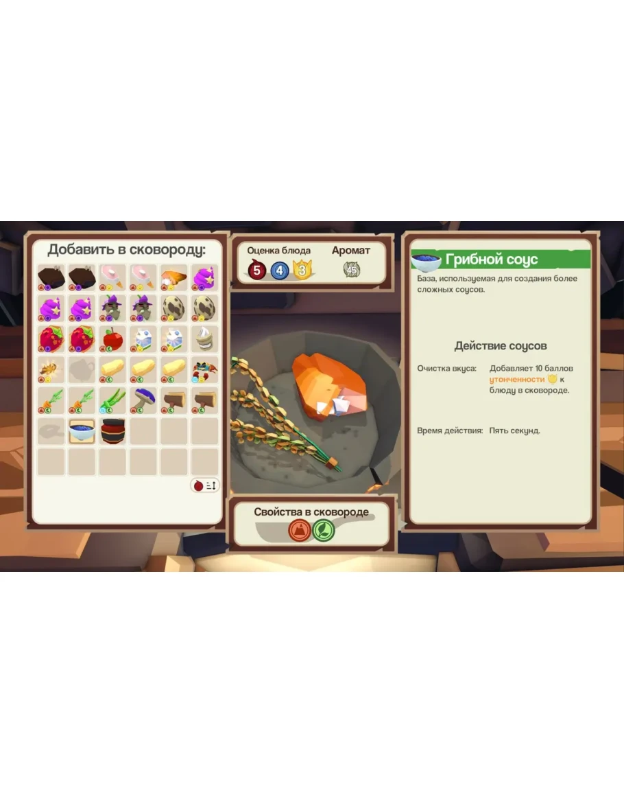 Вызывайте непримиримых соперников на гастрономические поединки за звание кулинарного короля Амброзии! Блюда оцениваются по нескольким параметрам, а вкусы у всех судей разные — значит, каждая битва будет особенной. Раскройте свой кулинарный талант: используйте соусы, чтобы изменить вкусовые качества блюд и расположить к себе судей.