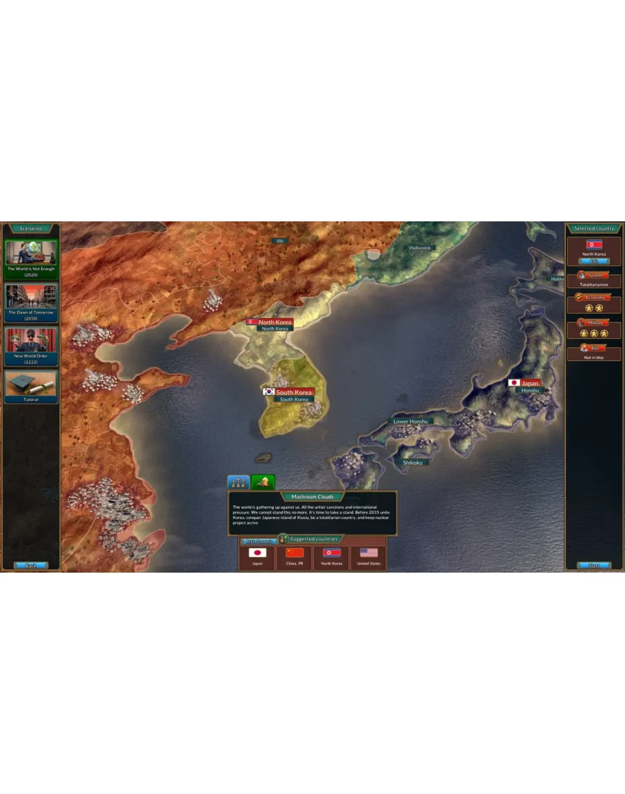 Выступите как одна из сторон конфликта и приведите свою страну к победе: США, Китай, Северная Корея, Япония.