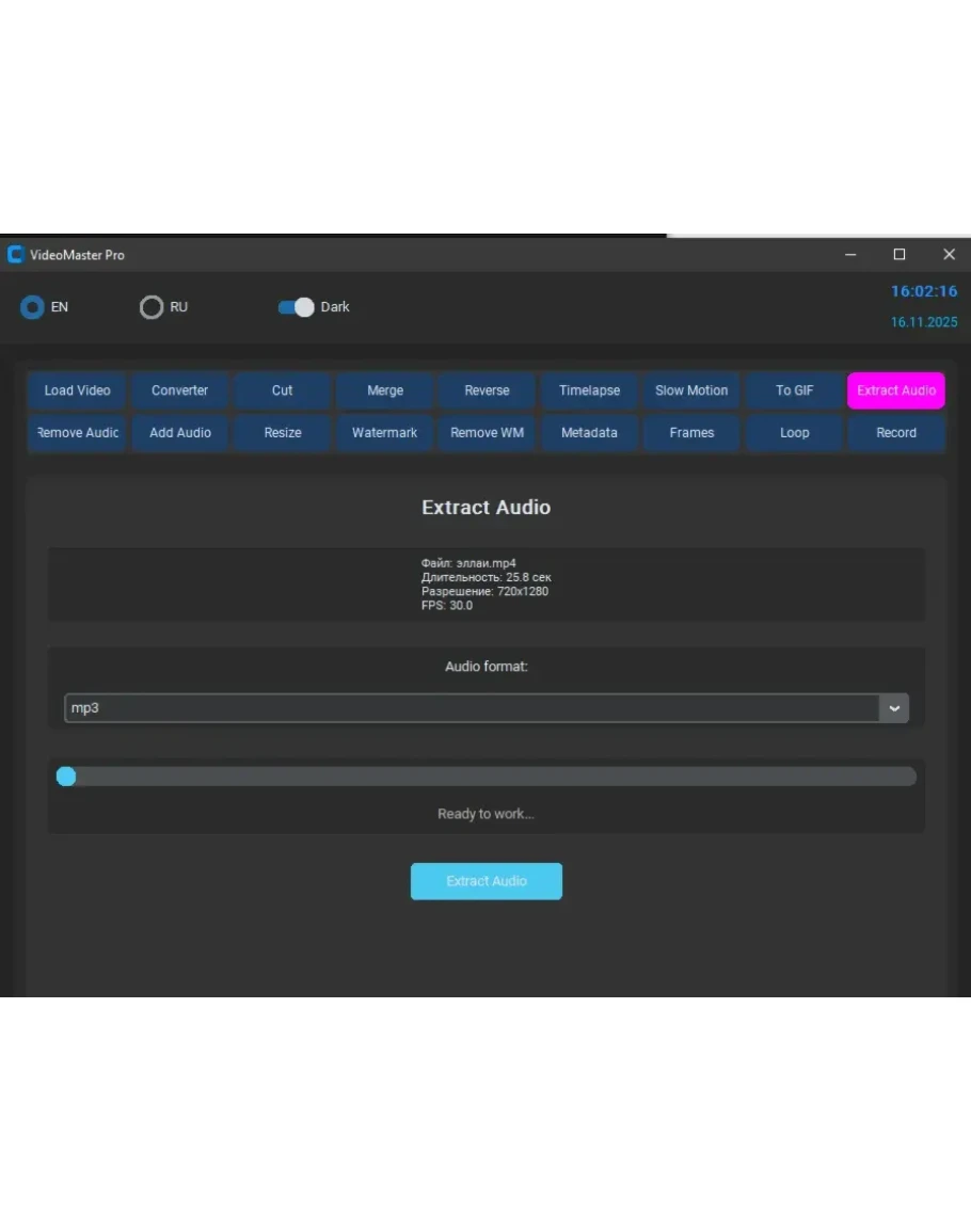 🎵Извлечение аудио - Экспорт звука в MP3 или WAV