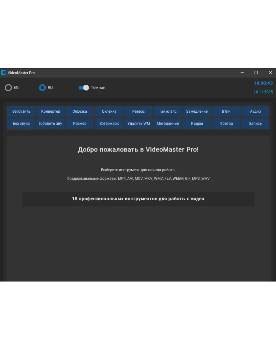 🎬VideoMaster Pro - Профессиональный видеоредактор с 18 инструментами