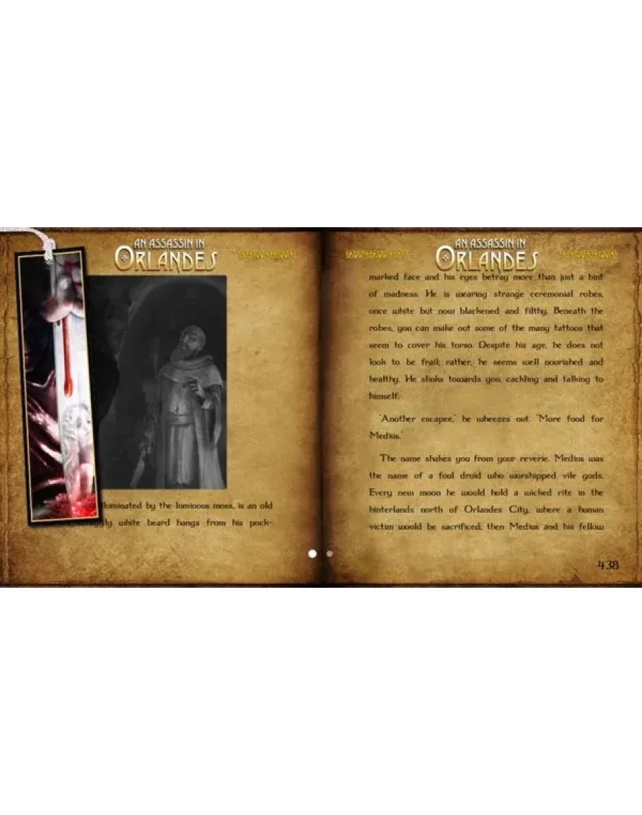 An Assassin in Orlandes is a gamebook where you control the story by deciding what action to take at key points. Use dice to determine your vitality, fitness and luck, then explore the world of Orlandes by battling foes and solving puzzles.