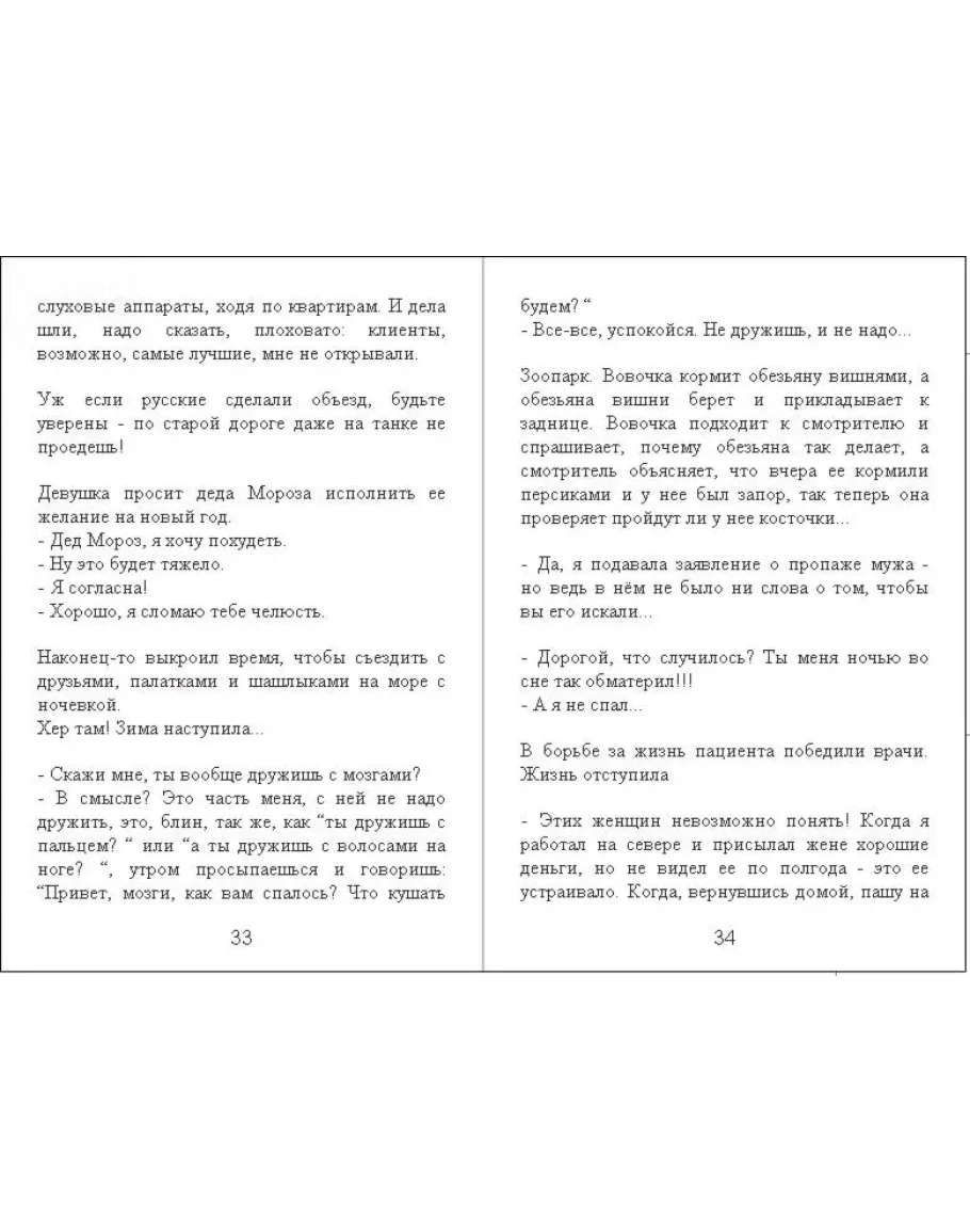 Сознательно не делал тематические выборки, так как считаю, что анекдоты должны идти одним потоком, а не ожидаемо, к примеру, только про тёщу на протяжении десяти страниц.