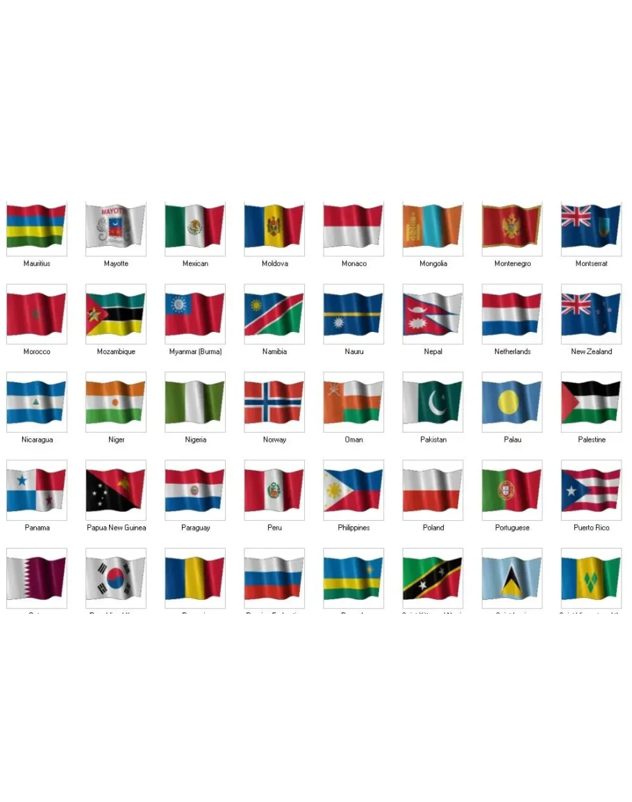 Анимированные флаги стран от Афганистана до Зимбабве.