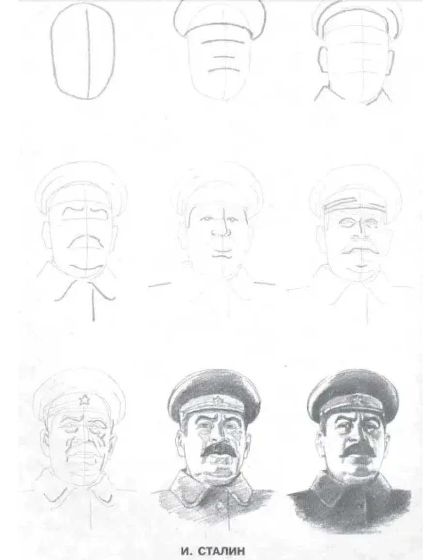 Поэтапный метод рисования советских партийных деятелей, политиков, военачальников, а также известных героев анектодов.