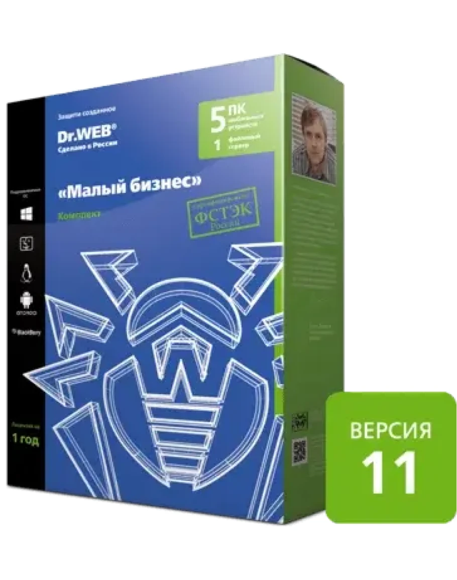 Dr.Web Малый бизнес (на 5 ПК, 1 сервер, 5 мобильных устройств) на 12 месяцев.