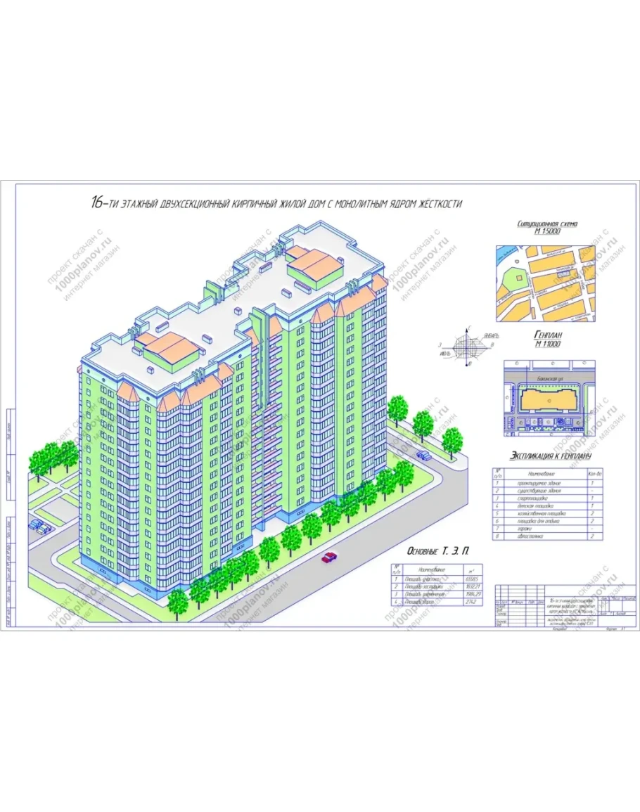 Дипломный проект на тему: 16-ти этажного двухсекционного кирпичного жилого дома с монолитным ядром жёсткости – под строительство в городе Астрахань.