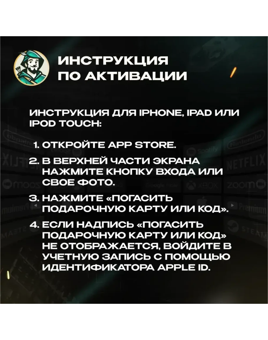 - Моментальная доставка. После оплаты вы попадете на страницу с уникальным кодом пополнения