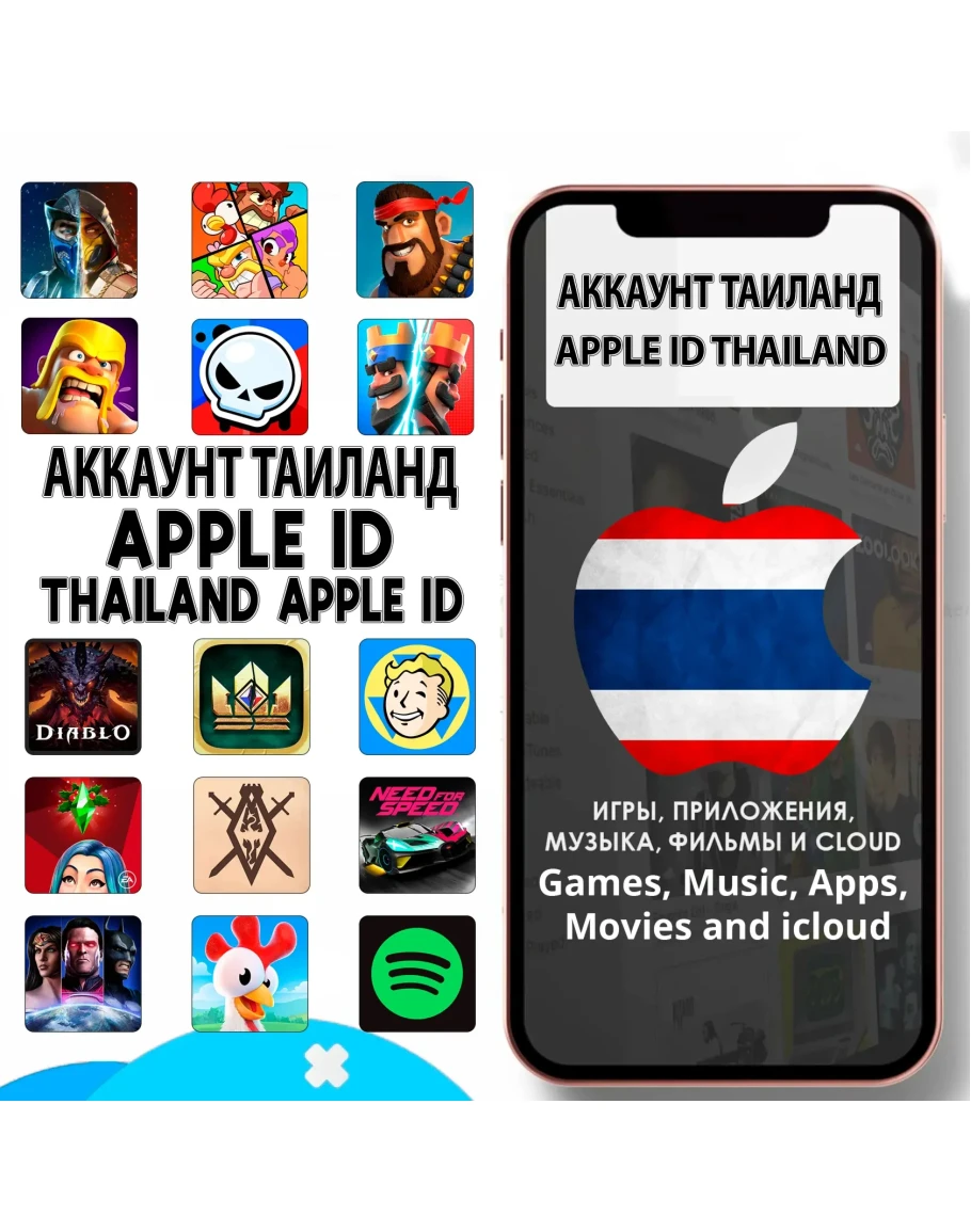 🟢 После покупки данного товара мы вы получаете личный Apple id (Аккаунт AppStore) для личного пользования на стране ТАИЛАНД. Данный аккаунт передается в ваше управление и вы сможете сменить от него пароль, дату рождения, контрольные вопросы.