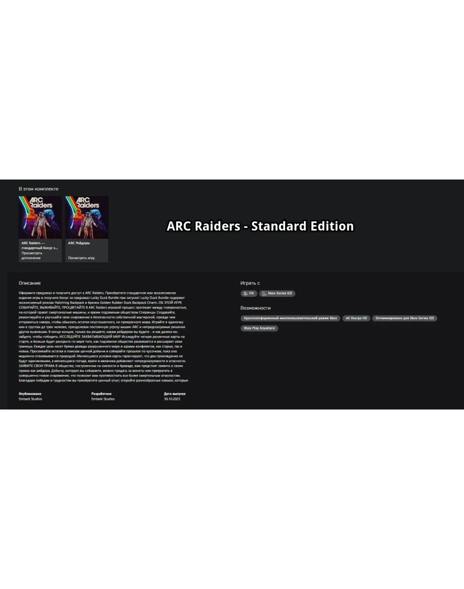 ARC Raiders - Standard/Deluxe XBOX КУПИМ ПРЕДЗАКАЗ