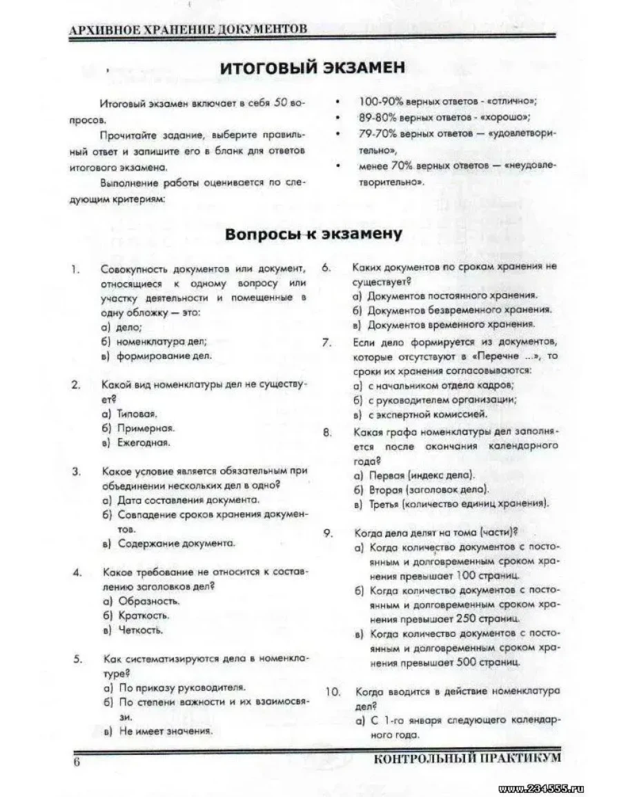 Архивное хранение документов:Итоговый экзамен РФЭИ