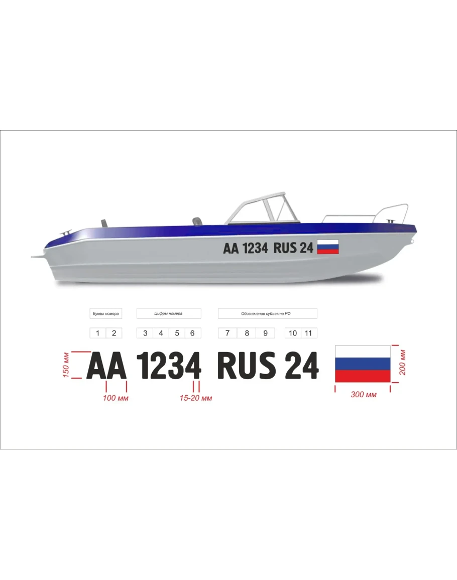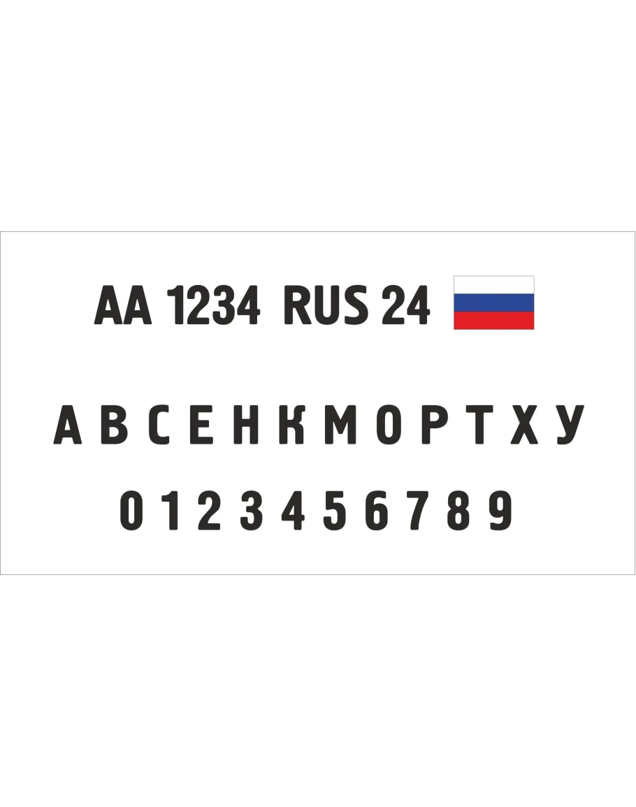 Комплект векторных букв, цифр и флаг РФ, для изготовления самоклеящихся номеров на лодки, катера и т.п.