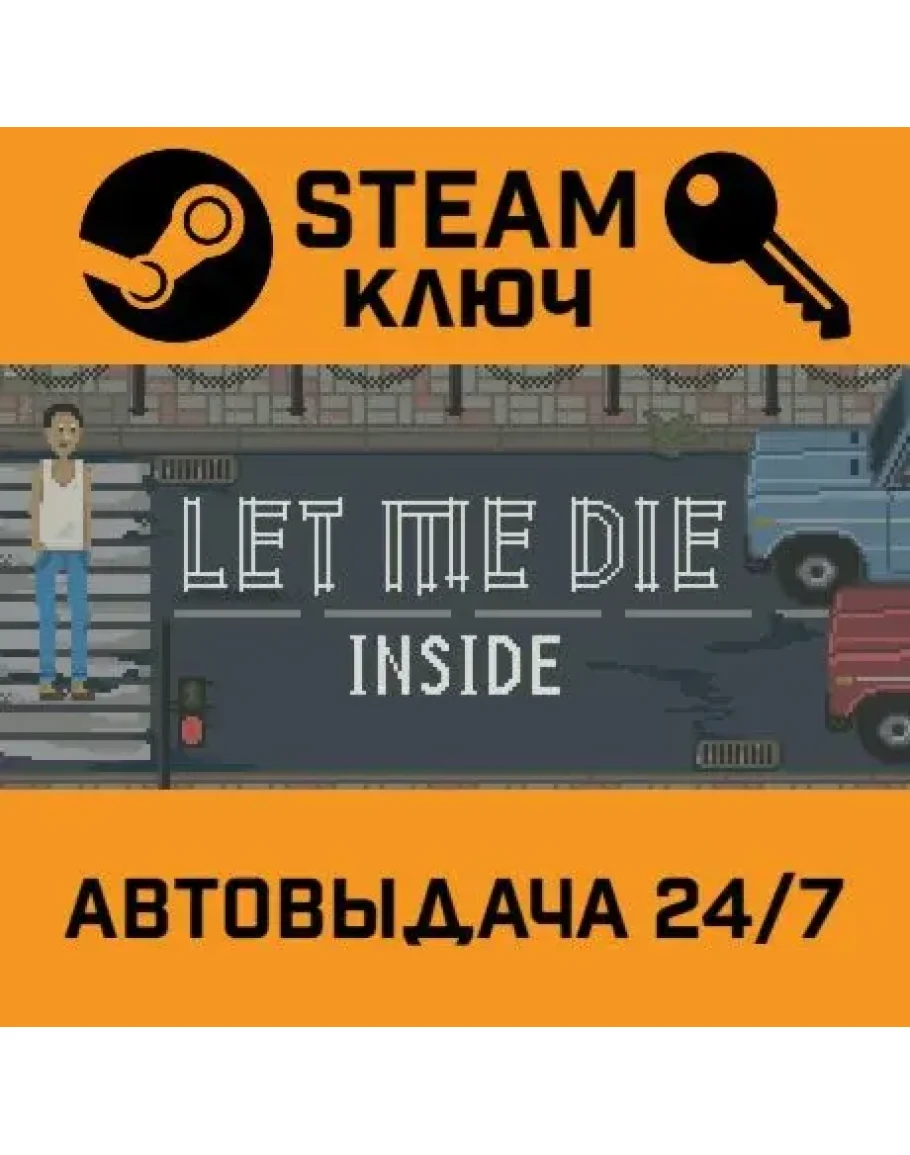 Я думаю что каждый чувствовал отчаяние хотя бы раз в жизни, и мы все знаем что это далеко не приятное чувство. Персонажи Let Me Die (inside) утонули в отчаянии и решили покинуть этот мир как можно раньше, а ты должен им в этом помочь. Let Me Die (inside) пытается научить игрока как предостеречь самого себя и окружающих от слишком глубокого отчаяния. Делается это показом ужасных последствий издевательства, безответственности, грубости, алкоголя и невежества в самом жестоком и беспощадном виде. Let Me Die (inside) - это квест. В каждом уровне, игрок проживает или ему рассказывают о событии которое сломало персонажа. После этого, игрок должен найти способ умереть; этот способ разный в каждом уровне. В большинстве уровней, у персонажа есть предсмертные желания, которые должны быть исполнены игроком. В основном, игра темная и депрессивная, особенно с саундтреком, но, иногда, проскакивает юмор и абсурдные события, которые разбавляют обстановку. Покупая эту игру, ты покупаешь депрессивный, но в тоже время поучительный и атмосферный опыт. Музыка, приятный pixel art, освещение, черный юмор и диалоги понравятся всем любителям инди-игр и/или абсурдных опытов.