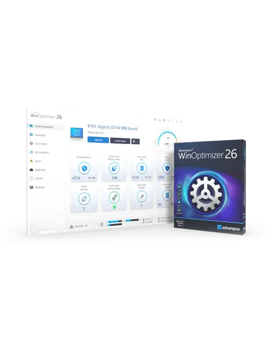 Наслаждайтесь стабильной производительностью операционной системы, повышайте свою безопасность и конфиденциальность или тщательно анализируйте параметры и производите масштабную оптимизацию программой Ashampoo WinOptimizer 26.