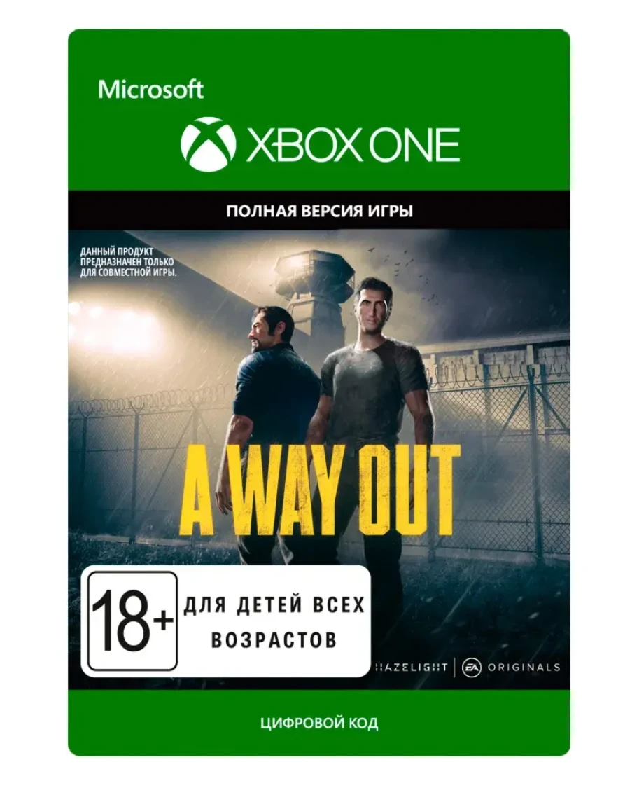 ---ЭТОТ ПРОДУКТ ПРЕДНАЗНАЧЕН ТОЛЬКО ДЛЯ СОВМЕСТНОГО ИПОЛЬЗОВАНИЯ. ДЛЯ СОВМЕСТНОЙ ИГРЫ ПО СЕТИ ТРЕБУЮТСЯ УСТОЙЧИВОЕ ПОДКЛЮЧЕНИЕ К ИНТЕРНЕТУ, УЧЕТНАЯ ЗАПИСЬ EA И ОДИН ДРУГ В СЕТИ С ИГРОЙ «A WAY OUT» НА ТОЙ ЖЕ ПЛАТФОРМЕ ИЛИ УСТАНОВЛЕННОЙ БЕСПЛАТНОЙ ПРОБНОЙ ВЕРСИЕЙ ДЛЯ ДРУЖЕСКОГО ДОСТУПА.