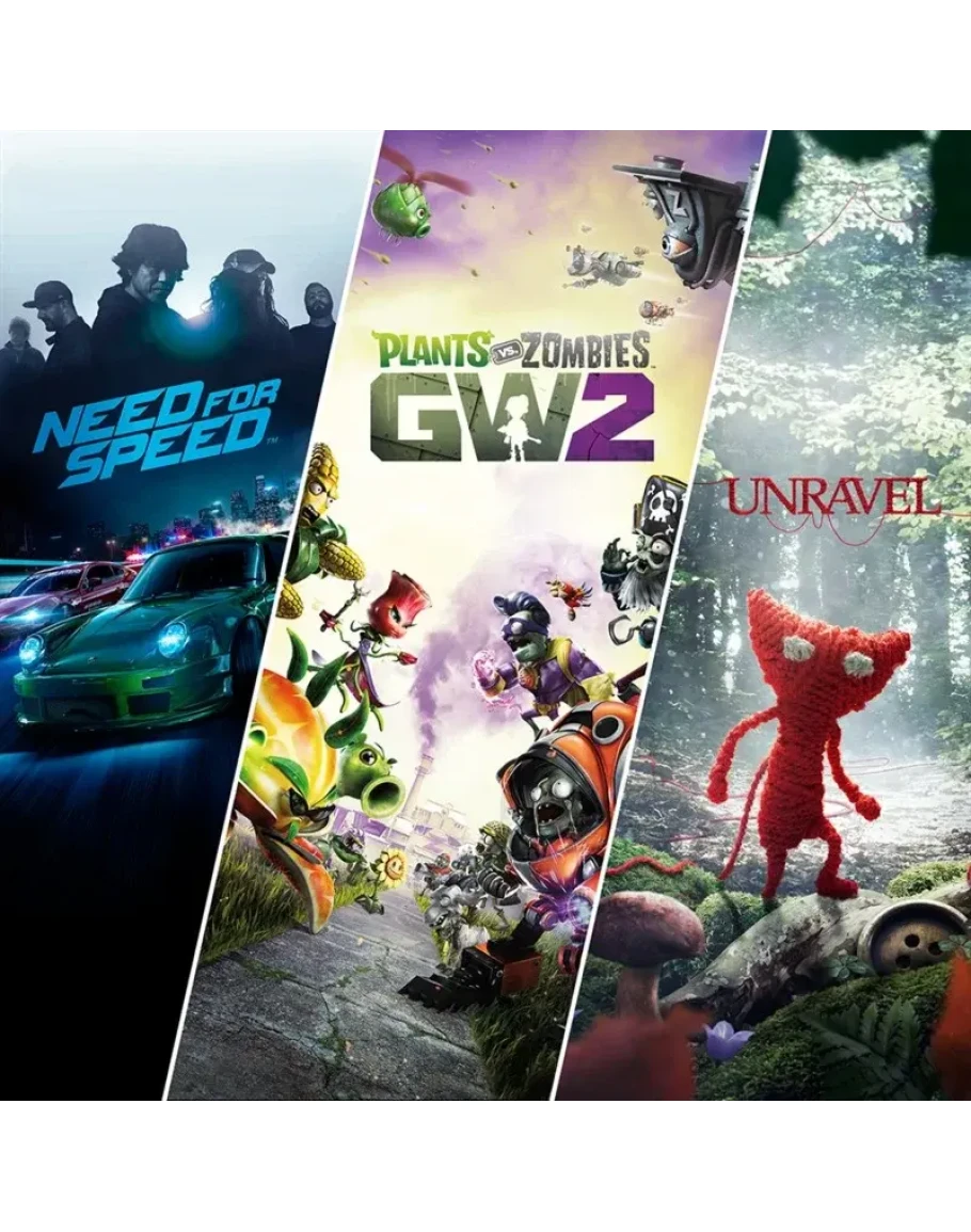 ⭐ Включает: Need for Speed™* Станьте иконой уличных гонок в Need for Speed™ с пятью способами игры и огромным открытым миром для гонок и исследований. растения против Zombies™ Garden Warfare 2 Битва за пригород выходит на новый уровень в игре Plants vs. Зомби™ Садовая война 2! В этом шутере доктор Зомбосс усилил свою орду и перестроил пригород в зомби-утопию. Unravel Unravel представляет Ярни, милый и очаровательный клубок пряжи. Отправляйтесь вместе с Ярни в грандиозное приключение и воссоедините давно утраченные семейные воспоминания.
