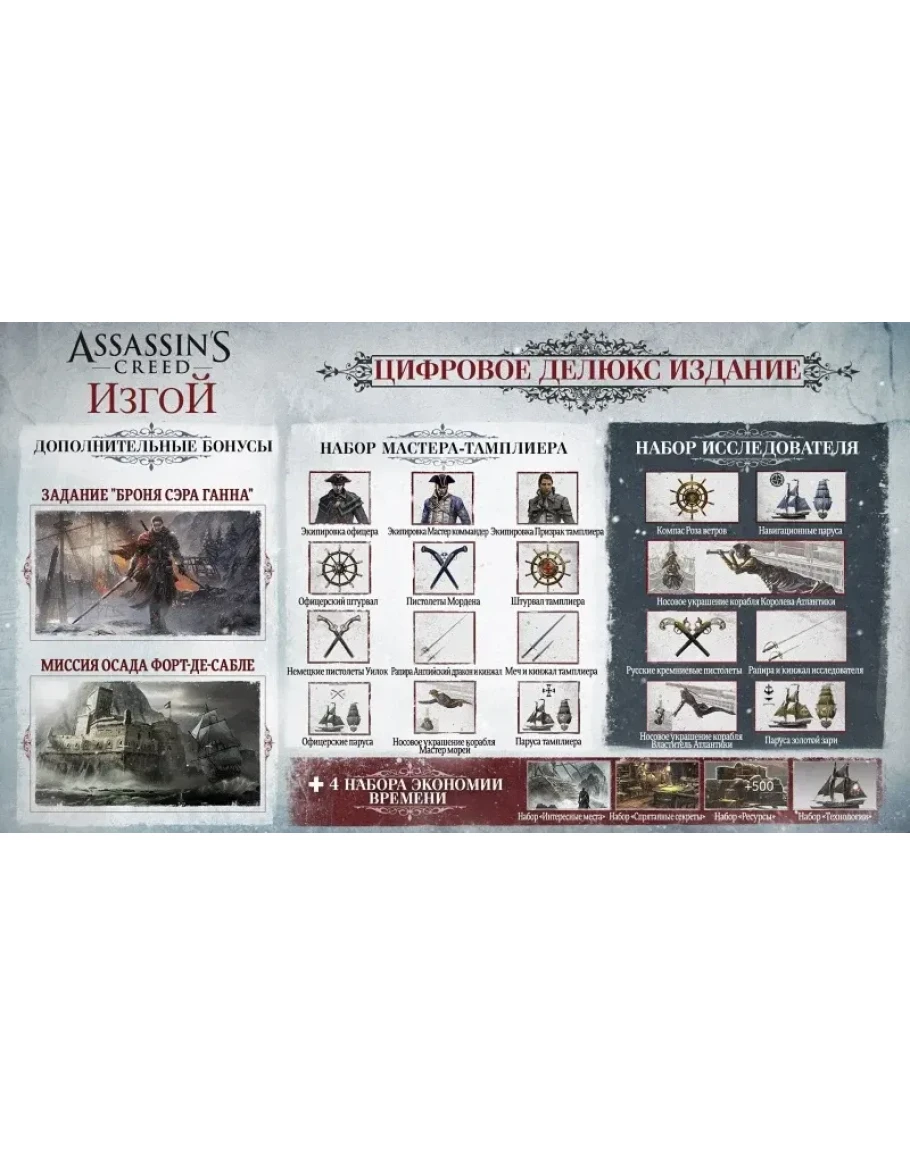 - Набор "Мастер-тамплиер". Станьте самым влиятельным тамплиером на суше и море - получите уникальную коллекцию оружия, снаряжения и предметов для оснащения корабля.