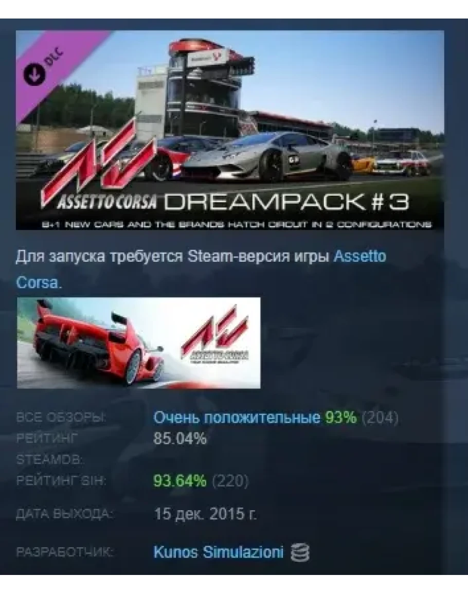 Assetto Corsa - Dream Pack 3 DLC STEAM РОССИЯ