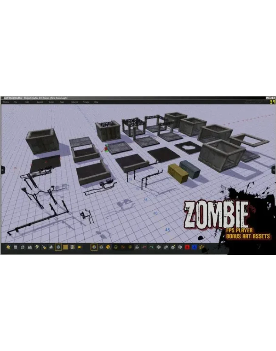 Packed with tons of assets, features and game player mechanics, users are able to create endless custom Zombie themed games that include: five custom enemy types of characters each with unique abilities and animations, a wide variety of weapons, health and other pick-ups, assets tuned with game-play mechanics, environment assets for interior and exterior map creation, explosive assets, scene-linking for endless map connections, FPS game play, sounds, sound effects, and custom placement for all enemy characters, start and end points. Get ready for some serious fun and immediate satisfaction creating your own Zombie FPS games to play AND share with your friends!!