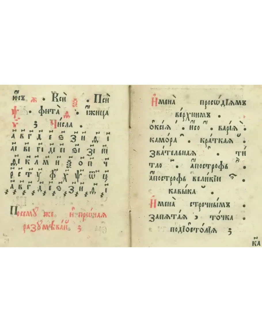 Сия зримая малая книжица по реченному алфавитица напечатана бысть по царскому велению вам, младым детем, к научению. Ты же, благоумная отроча, сему внимай, и от нижняя степени на вышнюю восступай.