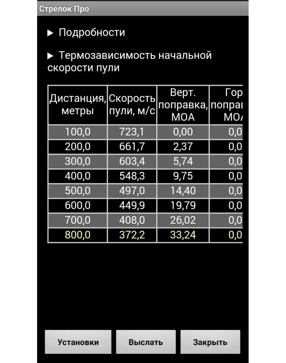 Позволяет вычислять Фактор гироскопической стабильности, деривацию, вертикальный ветровой снос и эффект Кориолиса. Позволяет использовать драг-функции компании Lapua, собственные драг-функции. Может рассчитывать траекторию без баллистического коэффициента!