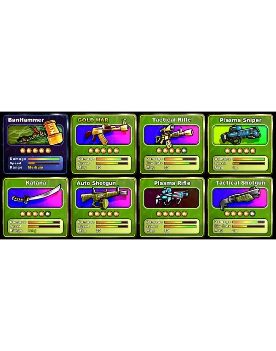 _There are more than 20 weapons with different attributes. Some can be purchased or crafted