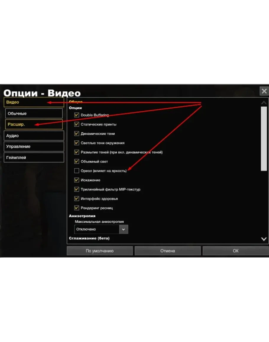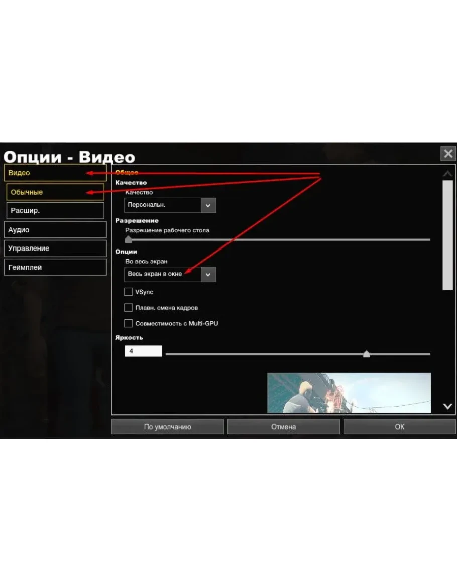 1. Запускаете игру далее в настройках игры идем в меню "Видео" ---> "Обычные" меняем "яркость" на (4 или 5 ) далее "Видео" ---> "Расширенные" убираем галочку "Ореол" если TriggerBot Apb Reloaded не работает в полноэкранном режиме, запускаем "Весь экран в окне" смотрим скриншоты ниже.