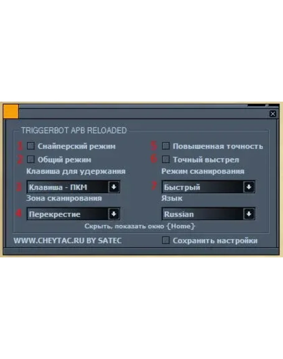3. Клавиша для удержания - клавиша при удержании которой будет работать триггербот апб релоадед