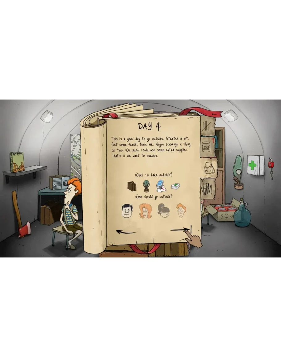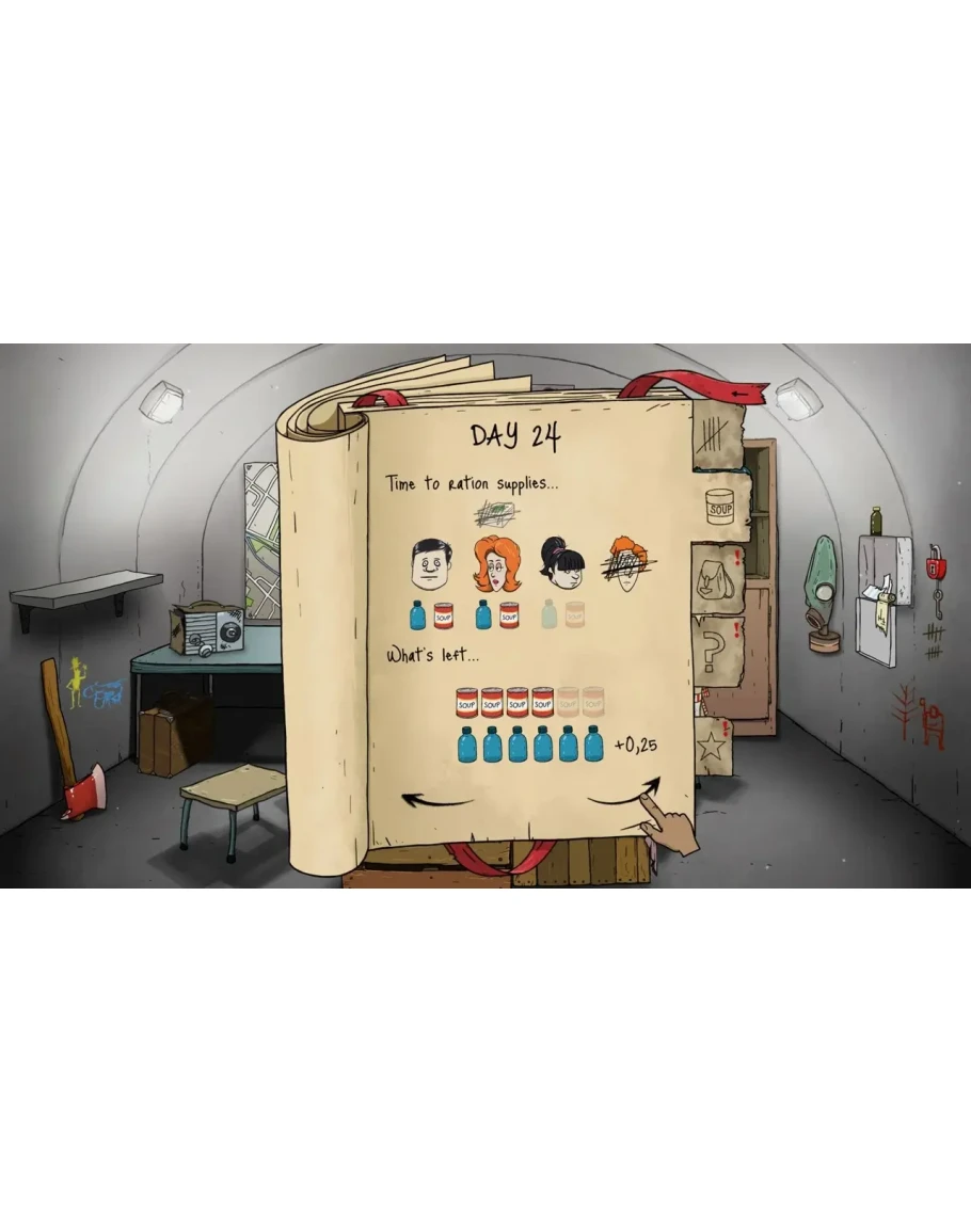Вовремя добраться до убежища — это только начало. Всё, что вам удалось собрать, и все, кого удалось спасти, сыграют важную роль в борьбе за спасение. Каждая история выживания будет уникальной, а каждый новый день принесёт новые неожиданности. Все ли истории закончатся хорошо? Это уже зависит от вас. Делите пищу и воду между обитателями убежища, эффективно используйте собранные предметы, принимайте трудные решения и совершайте вылазки на радиоактивную пустошь.