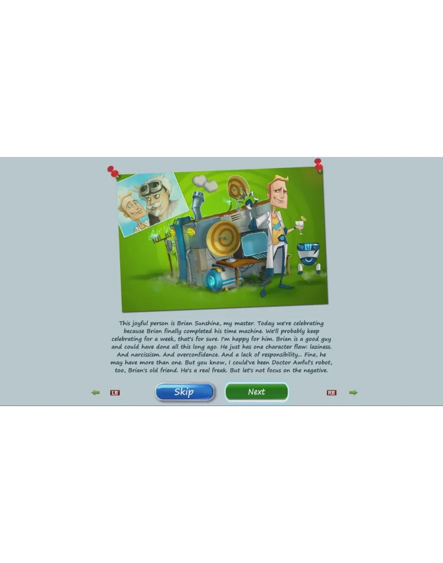 Брайан - выдающийся ученый, который создал машину времени и отправился в прошлое! Но оказалось, что не стоит ожидать беспечного путешествия по землям динозавров. Его бывший друг, Доктор Ужасный, уже тут! Он создал машину времени раньше Брайана и успел установить игровые автоматы в эпохе динозавров!