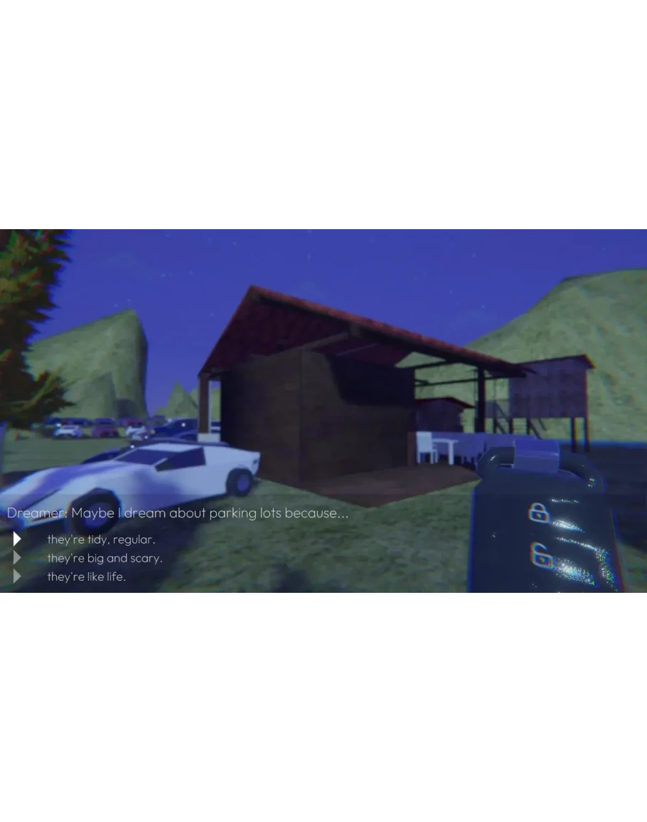 Ищите свою машину в лабиринтах и на парковках, пока вы разговариваете с психотерапевтом о чувстве потери. Интерактивная история о попытках найти смысл в нереальном. Основано на реальных снах!