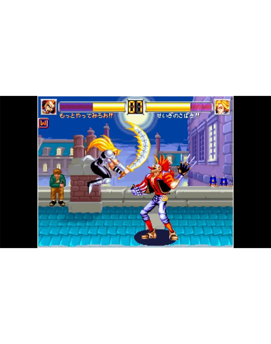 WORLD HEROES 2 JET is a fighting game released by SNK in 1994. It is the third title in the WORLD HEROES series. Sixteen heroes, villains, and other fighters have gathered to determine who is the strongest in the world. With dashes, back steps, and the addition of a counter system, you can enjoy speedy battles.