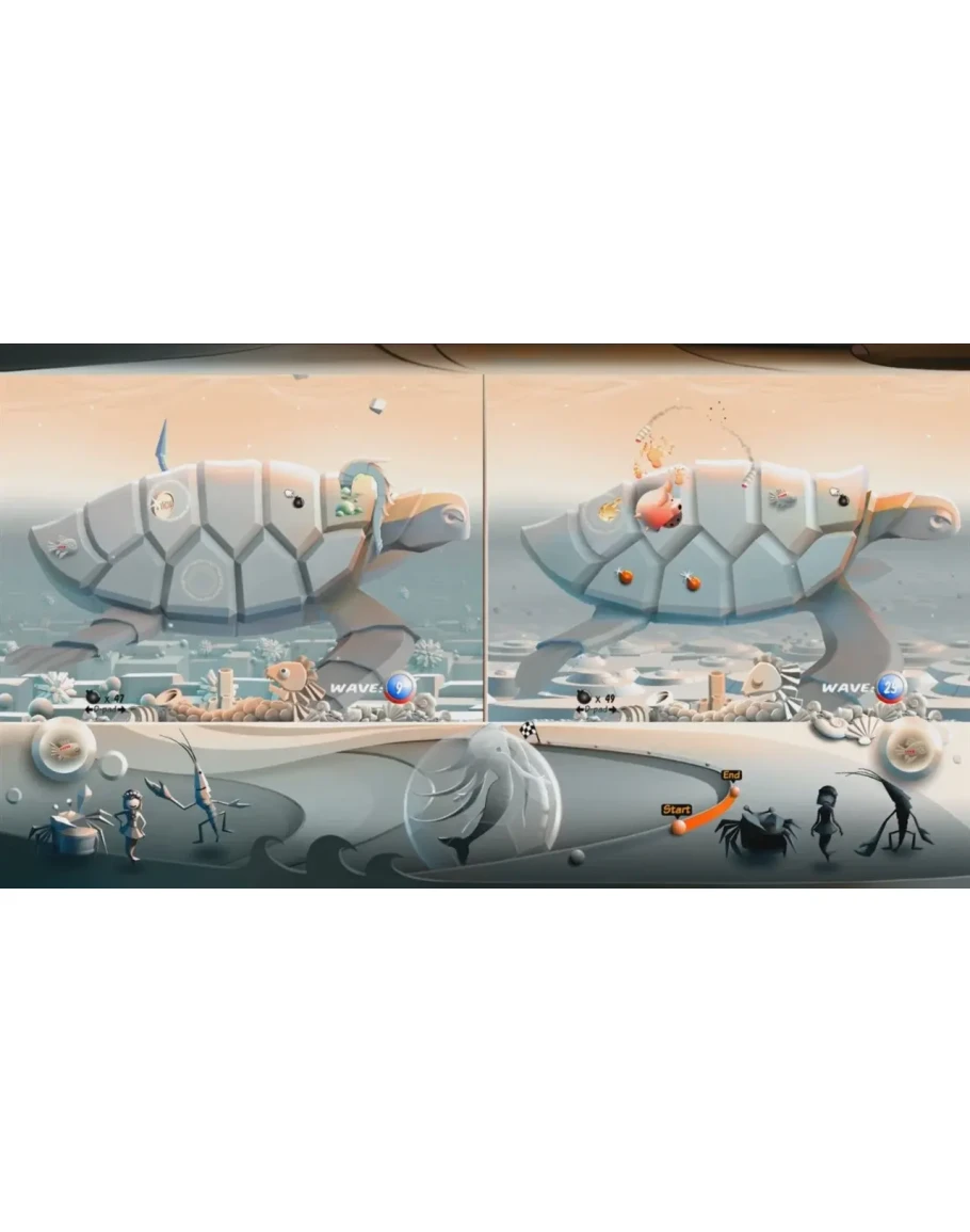 Exploring the meticulously crafted world in single player story mode, or multiplayer turtle racing your friends. It's an action adventure game.