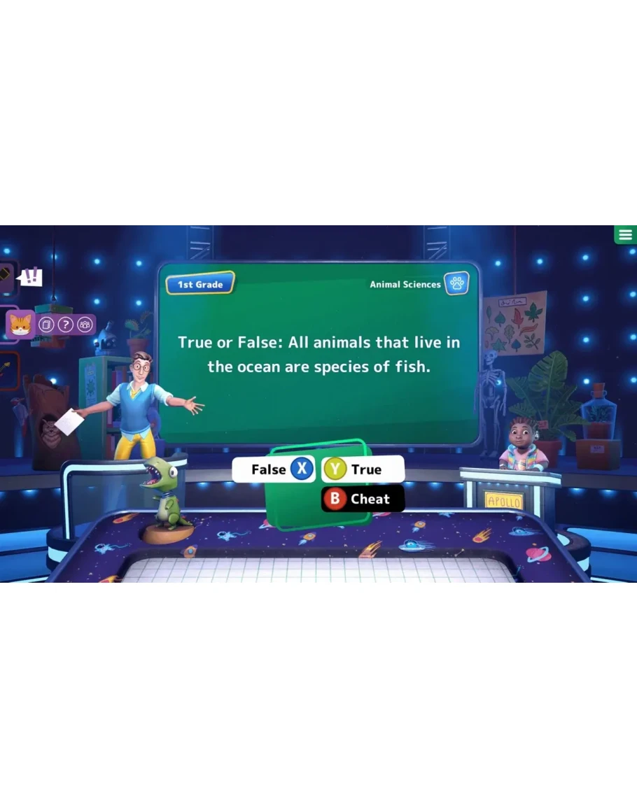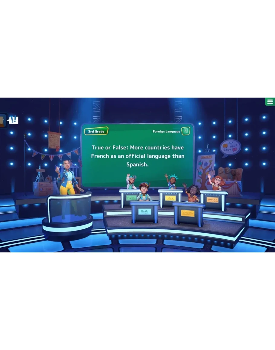 Более 6800 вопросов по таким темам, как зоотехника, словарный запас, математика и т. д., задаются разнообразными, полностью озвученными и анимированными персонажами. Преодолевайте все испытания в одиночку или вместе с семьей и друзьями в захватывающей многопользовательской игре на диване, чтобы доказать, что вы на самом деле умнее пятиклассника!