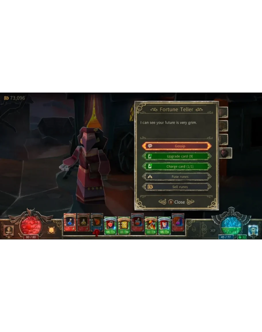 Карты и построение колоды: это не карточная игра, но все в ней, от предметов и заклинаний до навыков, представлено в виде карт. Путь к победе — подстроить свои карты к каждой ситуации. Улучшайте карты с помощью рун, а еще можно найти множество вариантов с разными бонусами. Легендарные карты лучше всех, но добыть их непросто."