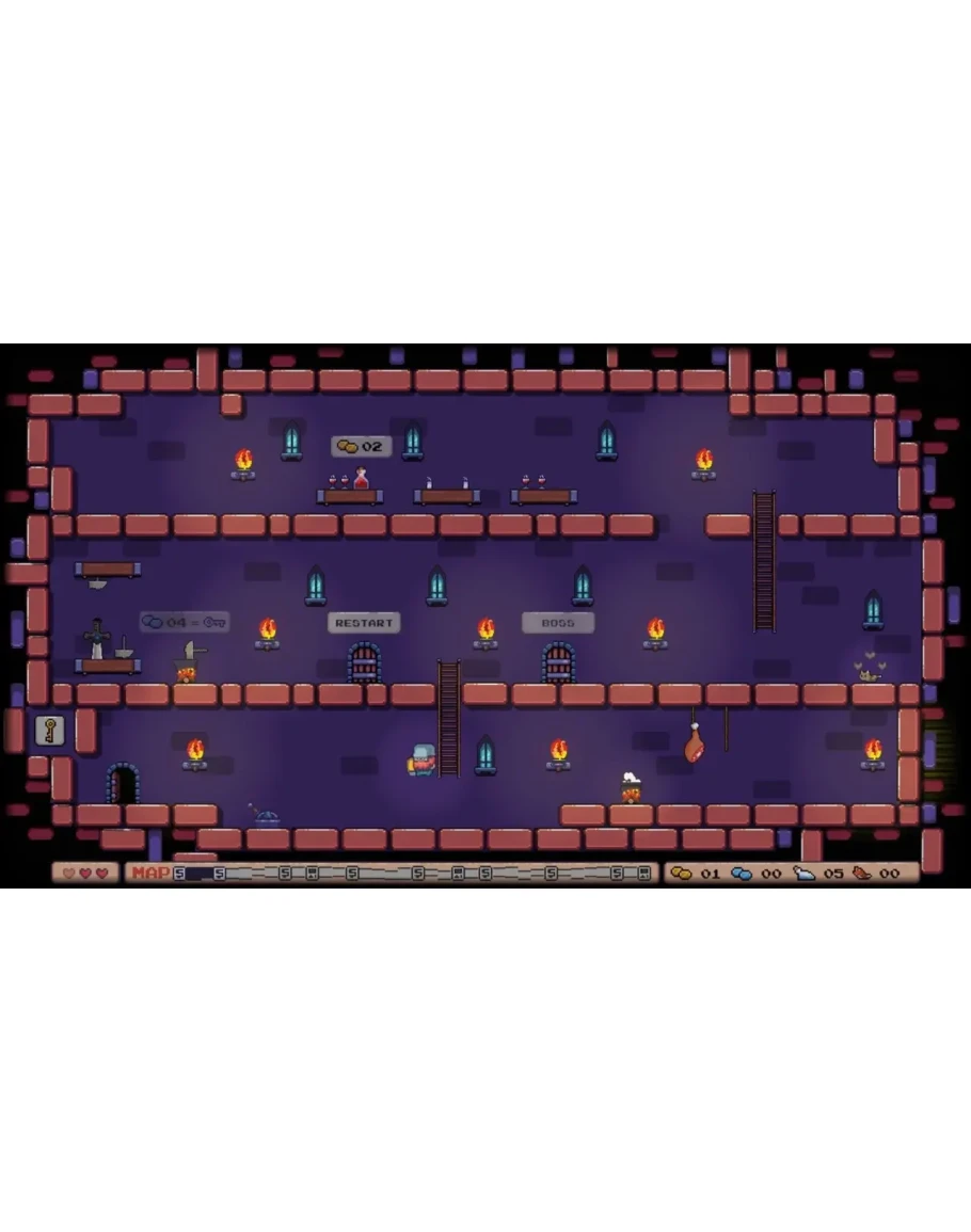 The game presents a simple but punishing gameplay. Avoid traps, eliminate the enemies, solve the puzzles, collect coins, do the right jumps and make sure to stay alive until you reach the boss fight or you’ll have to do everything all over again.
