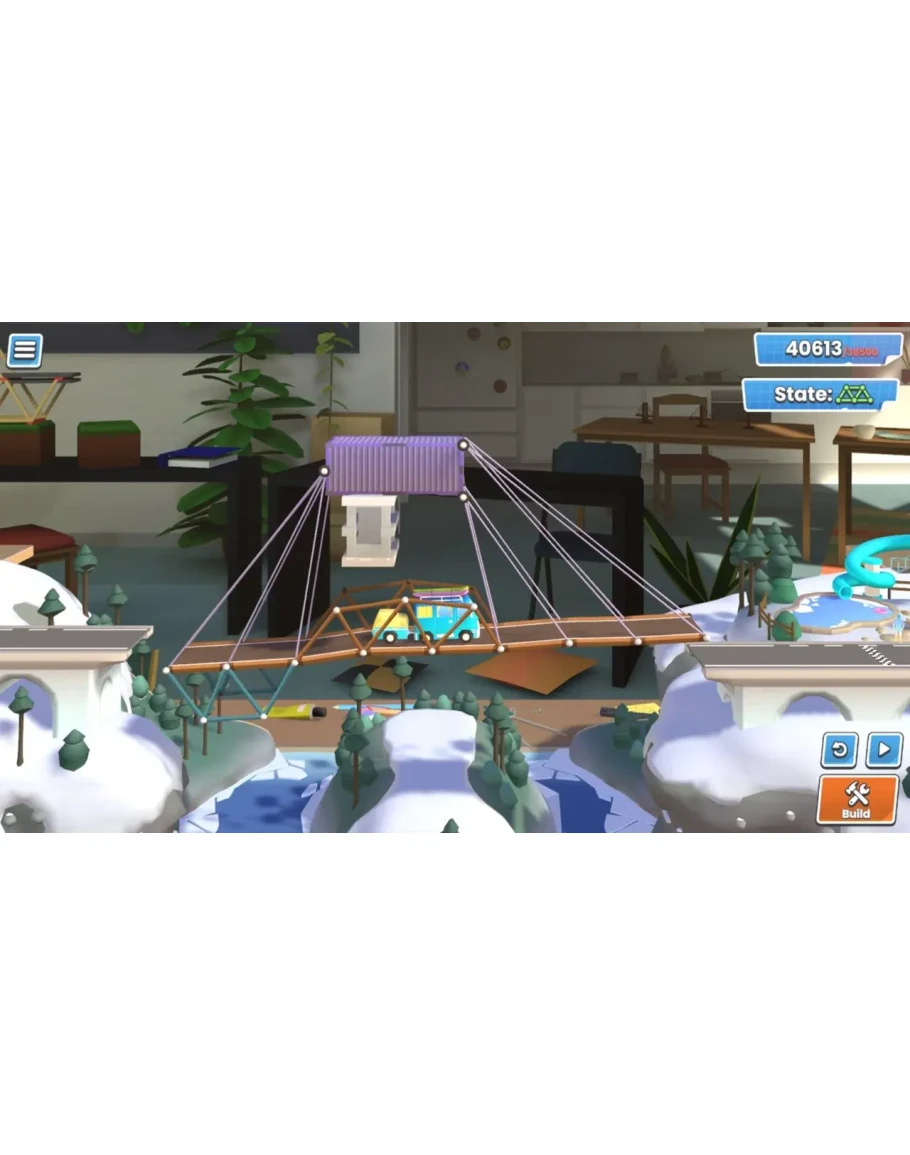 - Простор для творчества: экспериментируйте и стройте, а если уложитесь в бюджет и построите надежный мост, заработаете награду!
