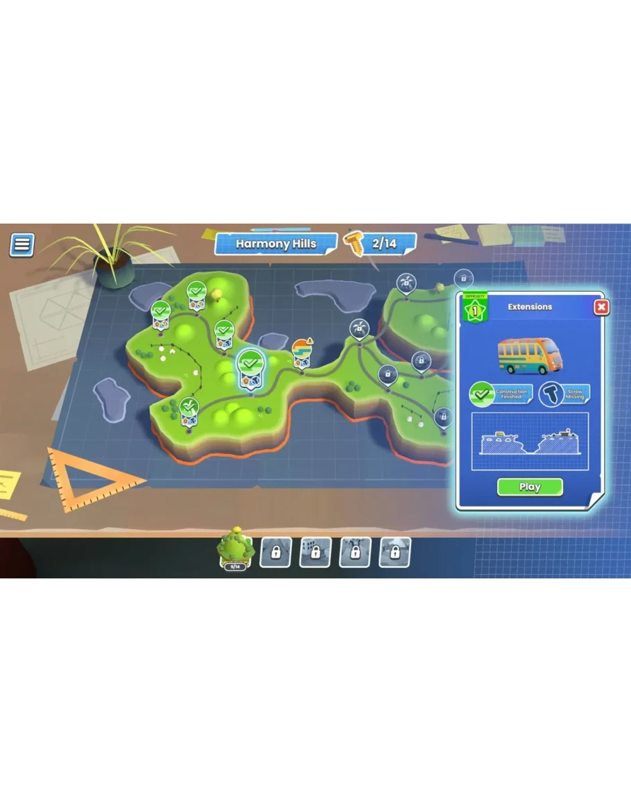- 70 головоломок: десятки уникальных задач. 7 видов транспорта и множество материалов (дерево, сталь, тросы, бетонные опоры и дорожное полотно) гарантируют, что каждая головоломка будет уникальной.