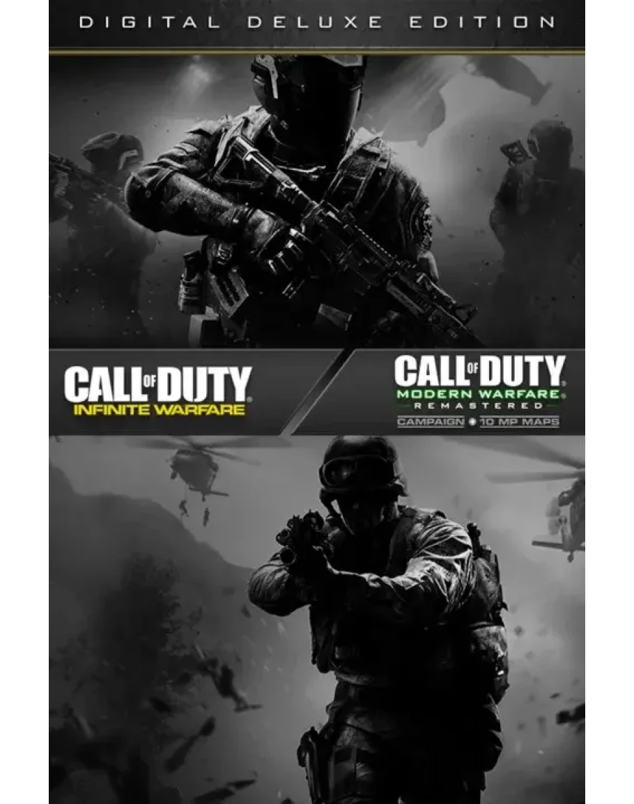 Call of Duty®: Infinite Warfare Digital Deluxe - самое привлекательное цифровое предложение. Call of Duty®: Infinite Warfare, Call of Duty®: Modern Warfare® Remastered* и сезонный абонемент Call of Duty: Infinite Warfare** по одной выгодной цене! Вдобавок вы получите карту Terminal, набор "Зомби в Космоленде", наборы для персонализации "Крылатая пуля" и "Хеллсторм", а также набор визиток.