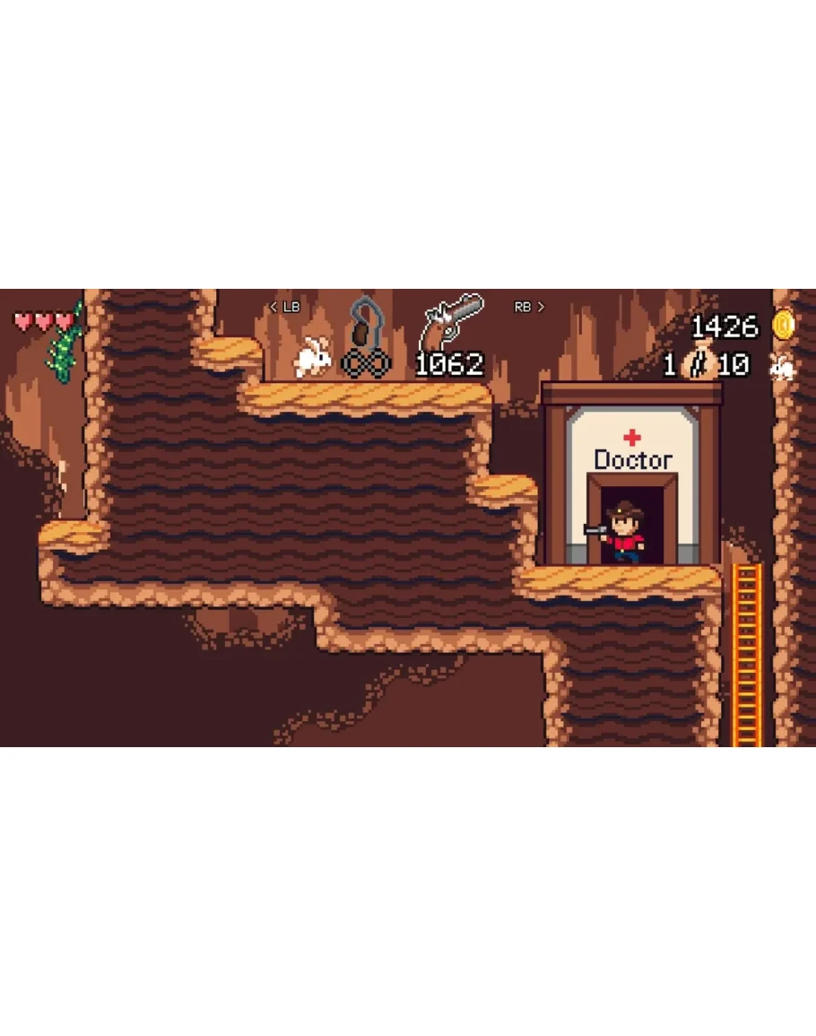 When the Bitty Gang steals the town's livelihood and takes it underground, a lone, brave cowboy must come to the rescue. Cave Ranger is an 8-bit inspired, retro platform game. Rescue sheep, fight outlaws, and face down dangerous critters. With a whip and pistol at his disposal, the cave ranger must traverse old mines, water reservoirs, and even a sawmill! It is a lighthearted, laid-back western, full of platformer fun.