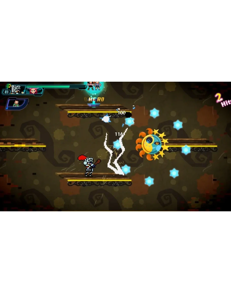 Successfully adapt and complete all stages using a large volume of 30 playable characters animated in 8-bit!