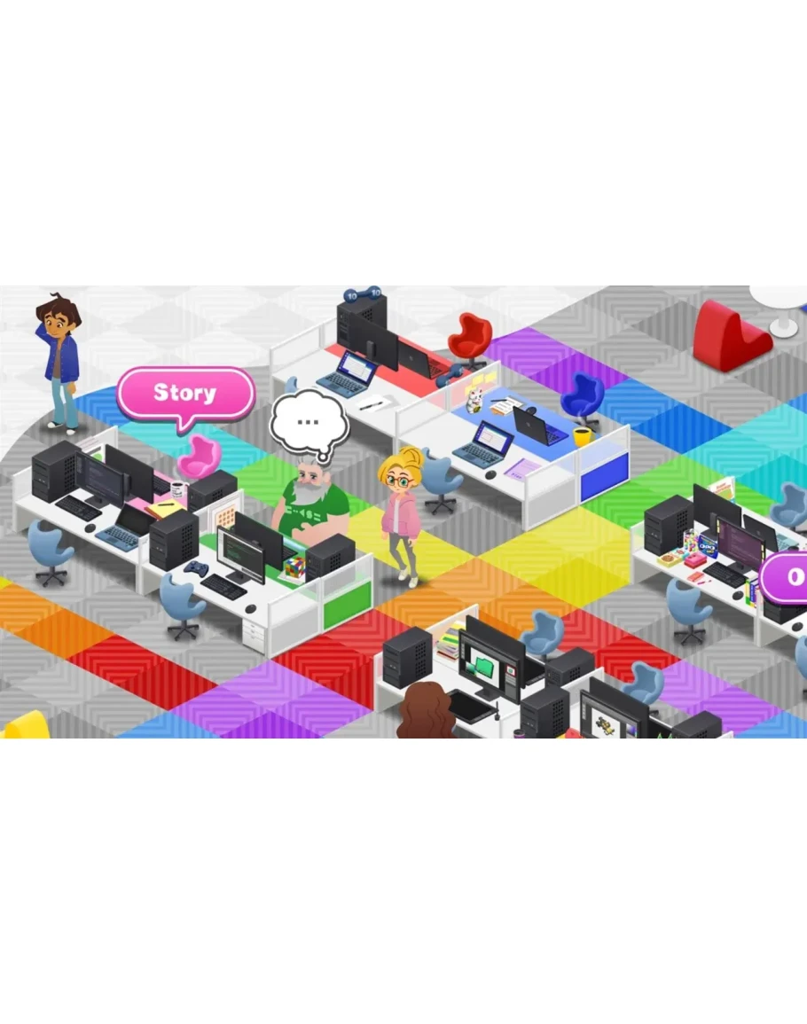 The story takes place in the development offices of a software company, ""Awesome Rainbow Corp"". Trouble arises just as you're gearing up to release the final version of the game! Many mysterious bugs are occurring, and time is running out!