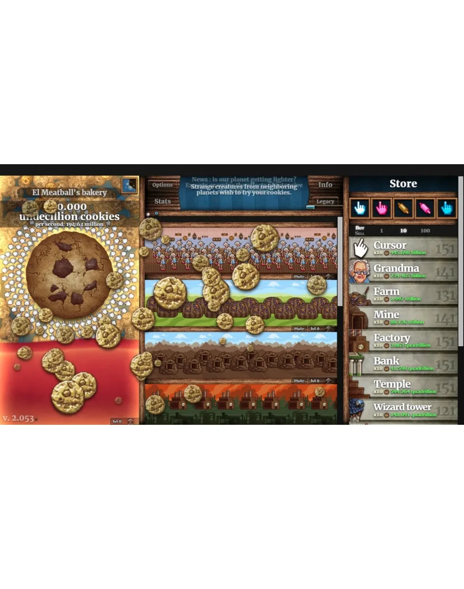 * Collect cookies and spend them to earn even more cookies