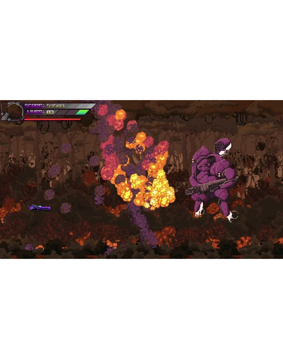 Devil Engine is a high octane, classic styled side scrolling shoot-em-up heavily influenced by the best in the genre from the 32-bit era, featuring a variety of incredible locations, hand drawn pixel art, and a blood-pumping soundtrack that brings the dark future to life.