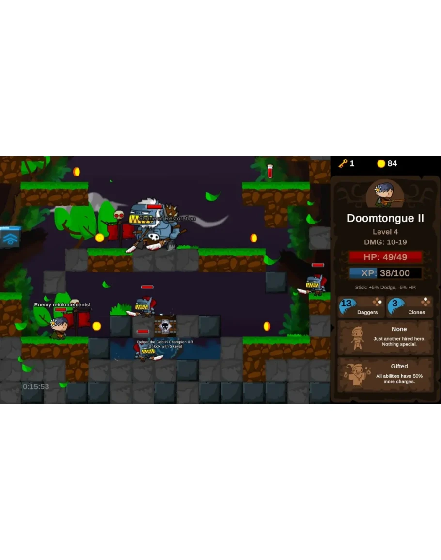 Vertical Drop Heroes — процедурный PRG-платформер с элементами roguelike. Вооружившись набором навыков и черт, используйте смекалку и ловкость, чтобы пережить опасности каждого из уровней, пока не встретитесь с финальным боссом и не откроете скрытую в игре истину!