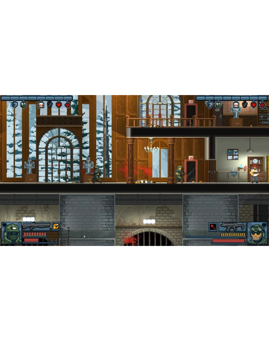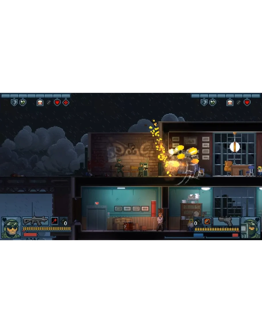 Выбирайте своё снаряжение, выбивайте двери и будьте готовы ко всему. Адаптируйтесь и молниеносно реагируйте на происходящее, а если понадобится - смело перезапускайте уровень и пробуйте новую стратегию. Сдерживайте отдачу и рассчитывайте время перезарядки, используйте дистанцию и укрытия, чтобы получить преимущество, и не забывайте про Тактическую Поддержку, чтобы пополнить здоровье и амуницию, или если нужно спасти Вашего непутёвого напарника. Также, можно придержать заработанные Очки, чтобы использовать Особую способность и вихрем пронестись через сложную последнюю комнату.